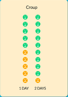 The chart above show how long croup lasts in children. The faces represent 10 children who have croup.
