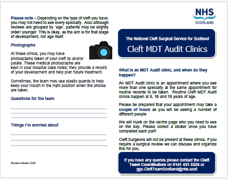 An MDT Audit clinic is an appointment where you see more than one specialty at the same appointment for routine records to be taken. Routine Cleft MDT Audit clinics happen at 5, 10 and 15 years of age.